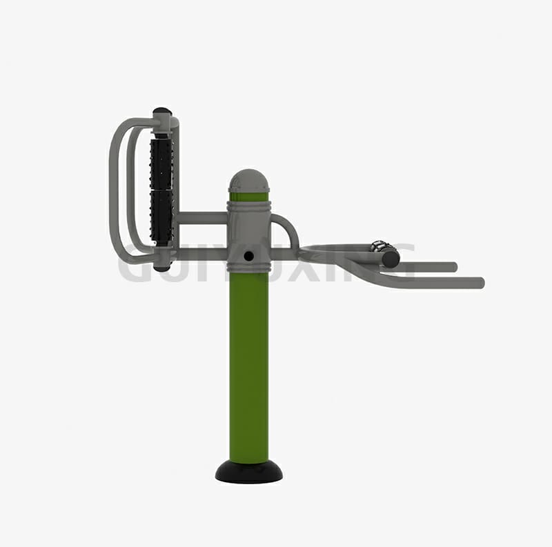 يتميز الجهاز بهيكل معدني قوي مطلي بمواد مقاومة للصدأ والعوامل الجوية، مما يجعله مثاليًا للاستخدام الخارجي طويل الأمد. يعتمد الجهاز على نظام حركة ميكانيكي بسيط يتيح أداء تمارين الدفع والسحب بشكل مريح دون الحاجة إلى كهرباء أو صيانة معقدة.
