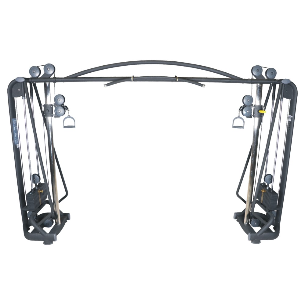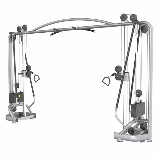 جهاز كابل كروس أوفر مزدوج القنوات مع محورين مستقلين، يمنحان تحكماً عالياً في الزوايا والمستوى، ما يسمح بأداء تمارين صدر (Cable Fly)، وأكتاف، وظهر، وأذرع، وأرجل بطريقة فعّالة.